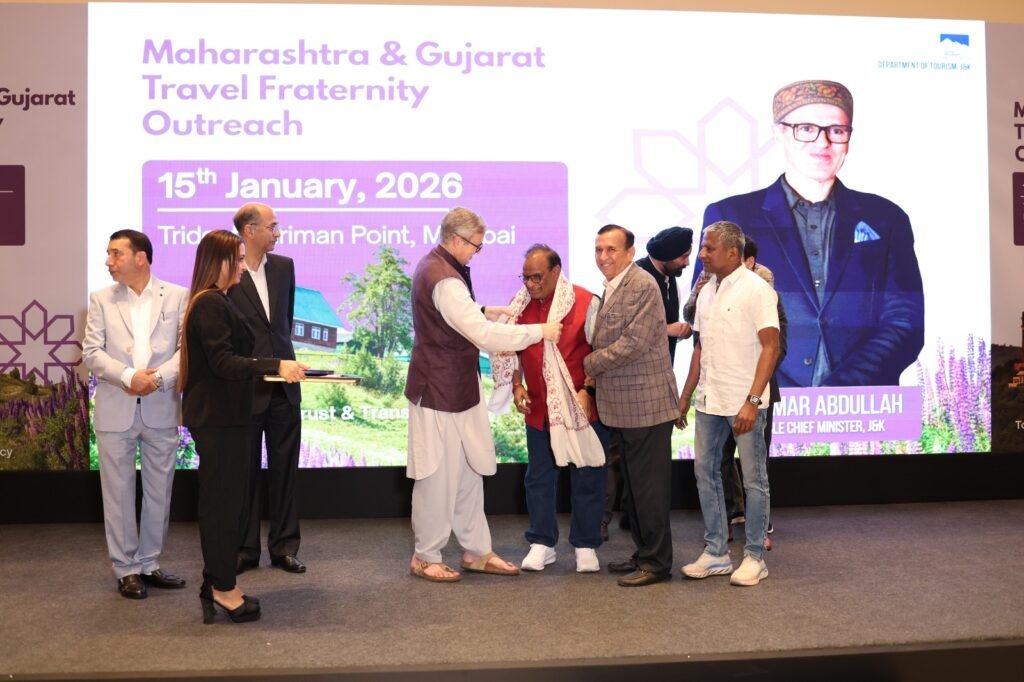 कोल्हापूर, (प्रतिनिधी): पहेलगाम येथे पर्यटकावर झालेल्या हल्यानंतर काश्मीरमध्ये भारत सरकारच्या पर्यटन विभागाने व काश्मीर सरकारने देशातील टूर्स अँड ट्रॅव्हल असोसिएशनसला पर्यटक कश्मीरला पाठविण्याचे आवाहन केले होते, त्यानुसार देशातील विशेषत: महाराष्टातील अनेक ट्रॅव्हल असोसिएशनच्यावतीने पर्यटक जम्मू काश्मीरला पाठवत असल्याबद्दल कृतज्ञता म्हणून काश्मीरचे मुख्यमंत्री ओमर अब्दुल्ला यांनी मुंबईत एका छोटेखाणी कार्यक्रमात या सर्वांचे अभिनंदन केले. यामध्ये ट्रॅव्हल एजंट असोसिएशन ऑफ कोल्हापूर यांचा विशेष सन्मान करण्यात आला.